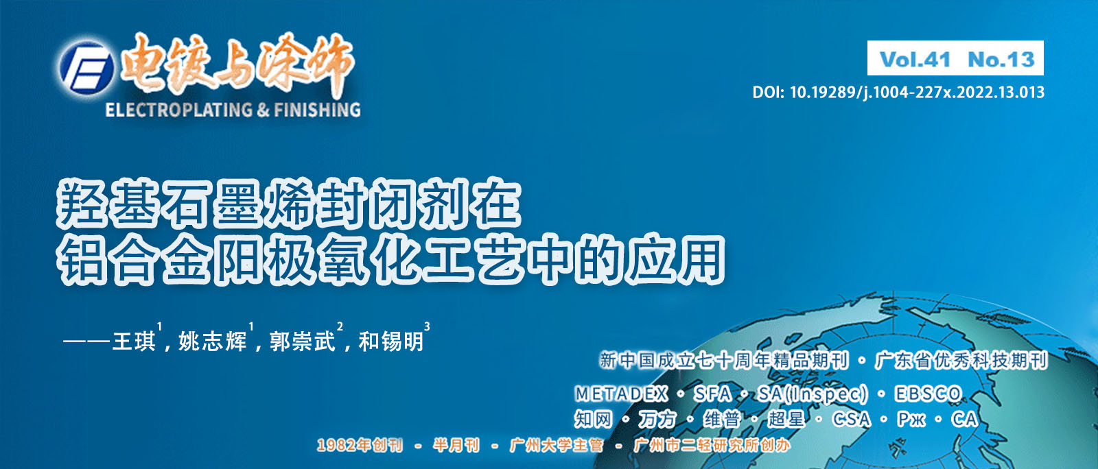 總經(jīng)理王琪、工程師姚志輝發(fā)表文章《羥基石墨烯封閉劑在鋁合金陽極氧化工藝中的應用》